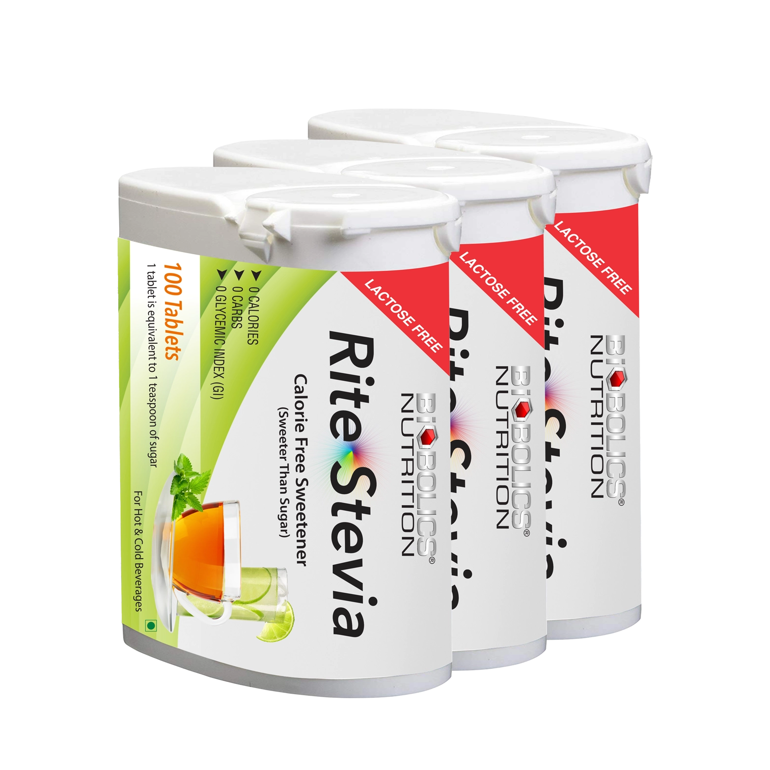 Stevia tablets combo pack. 3 boxes of 100 each. 1 tablet ≈ 1 tsp sugar. Quick dissolving, gluten-free, ISO 22000 certified.