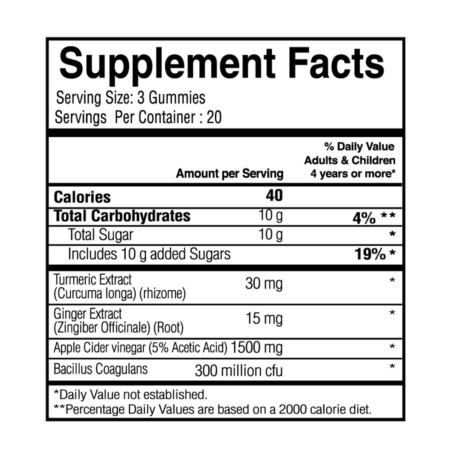 Follow the label directions for Apple Cider Vinegar. If you’re combining supplements or have dietary restrictions, consult a qualified professional for guidance.